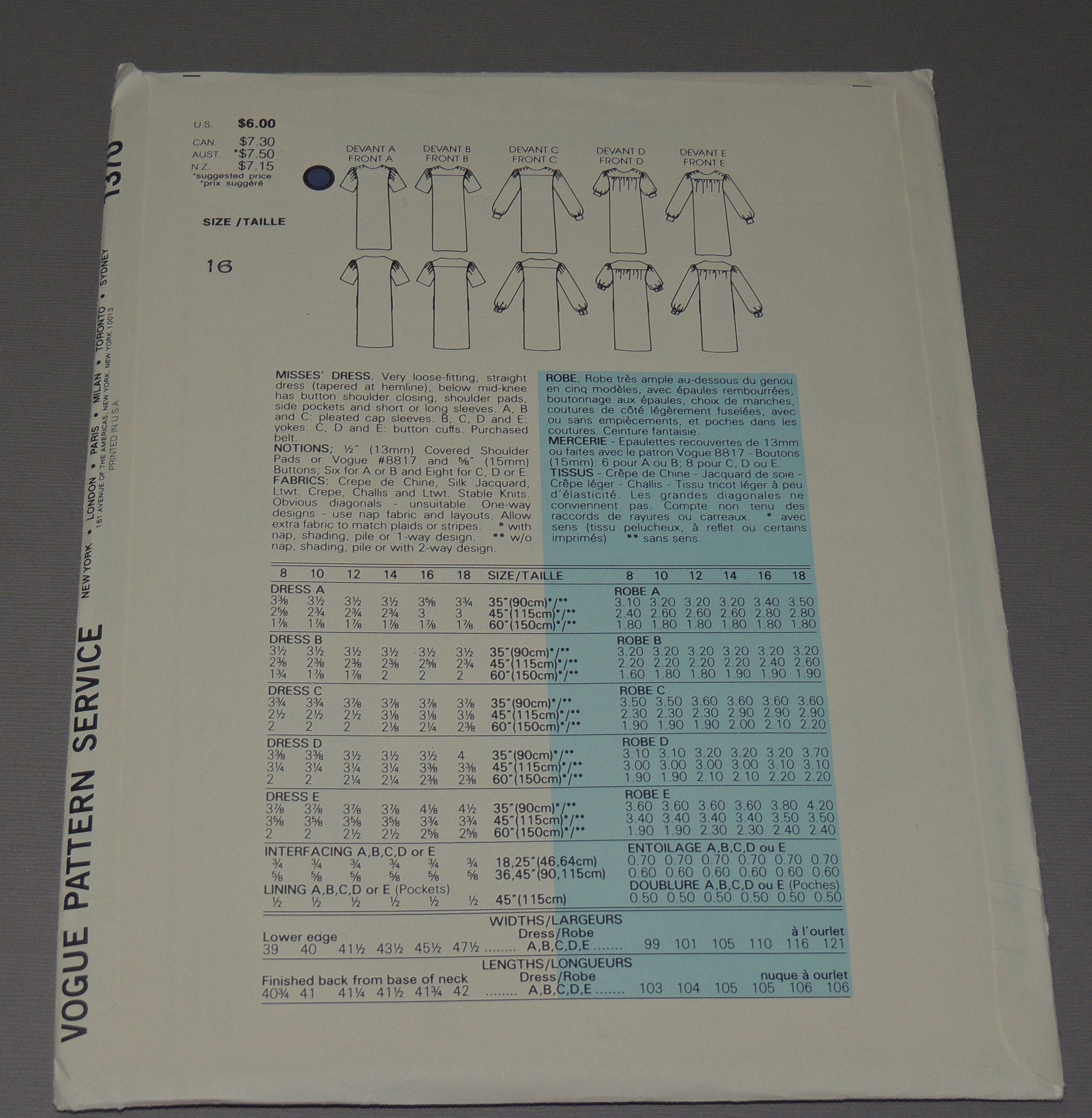 Uncut Bust 38 Vogue Basic Design 1716 Dress Pattern Etsy